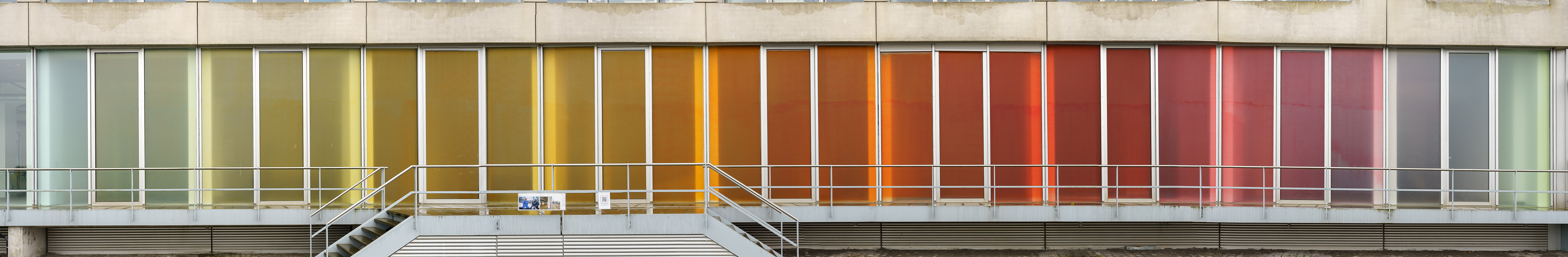 Green glow, 2024, 400 × 3.600 cm, food colouring, buttermilk and soy yoghurt on window glass